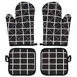 Milcea Manoplas Horno y Almohadillas Aislantes Juego De 4 - Resistentes Al Calor De 300°c, Antideslizantes Guantes Horno Silicona, Algodón Suave, Largo y Flexible Guantes para Horno, Negro