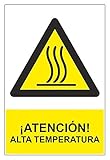 - CARTEL Atención Alta Temperatutra. Homologado, Fabricado según Normativa, con Pictograma y Texto.