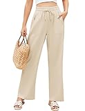 - Pantalones casuales de mujer: Cintura elástica alta con cordón, pantalones de corte holgado, pantalones casuales de pierna ancha con bolsillos, cómodos pantalones de playa, elegantes pantalones...