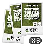 - Lote de 3 sobres de colorante textil VERDE OLIVA. Tintura a mano o a máquina adaptada a todos los tejidos naturales (lino, algodón, seda...)